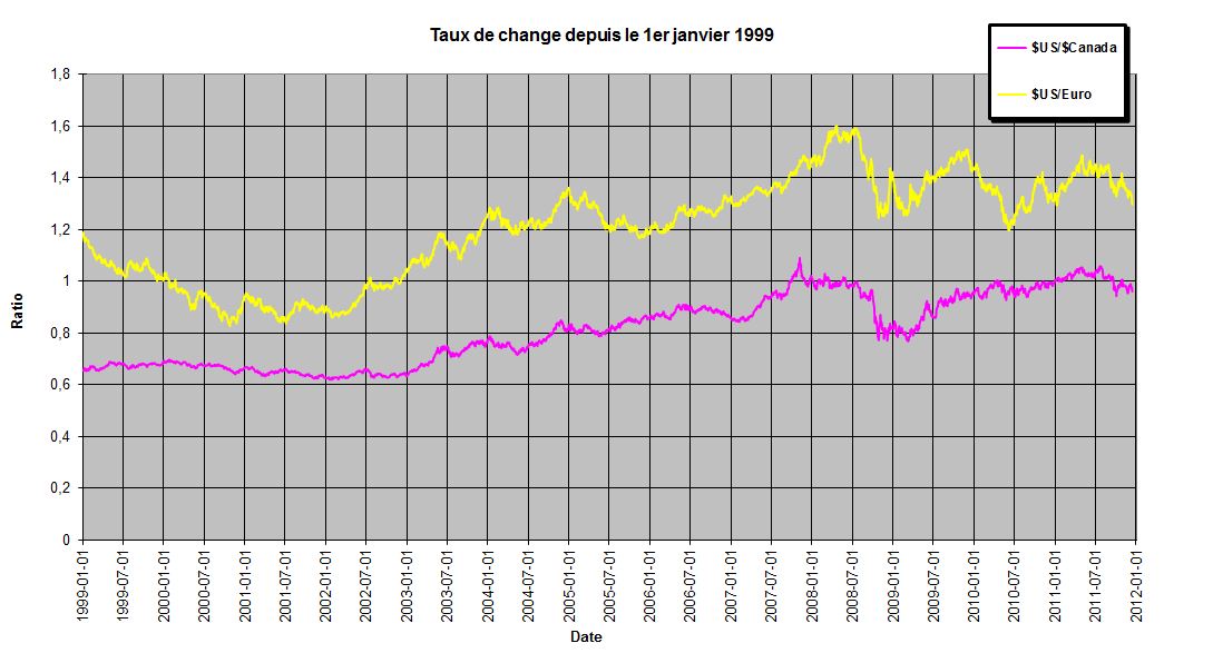 Taux de change, Canada, Euro et dollar États-Unis 1999-2011