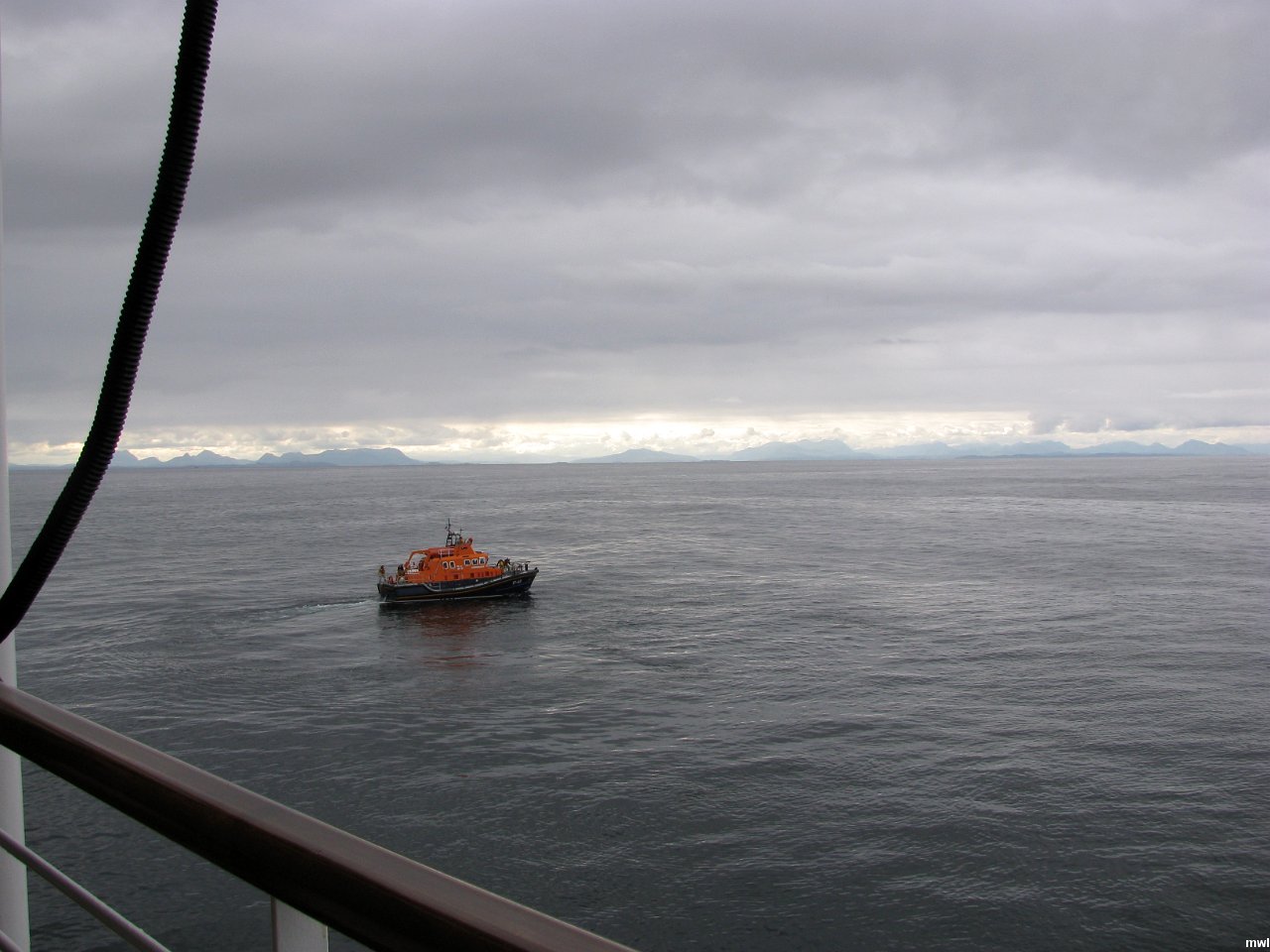 jeudi, 21 juillet 2011, 08h51 | En mer on débarque un passager devant être hospitalisé | Écosse | GPS: 58°9'24.01" N | 6°0'13.03" W | © Marcel Walter Landry | Fichier: IMG_8760.JPG
