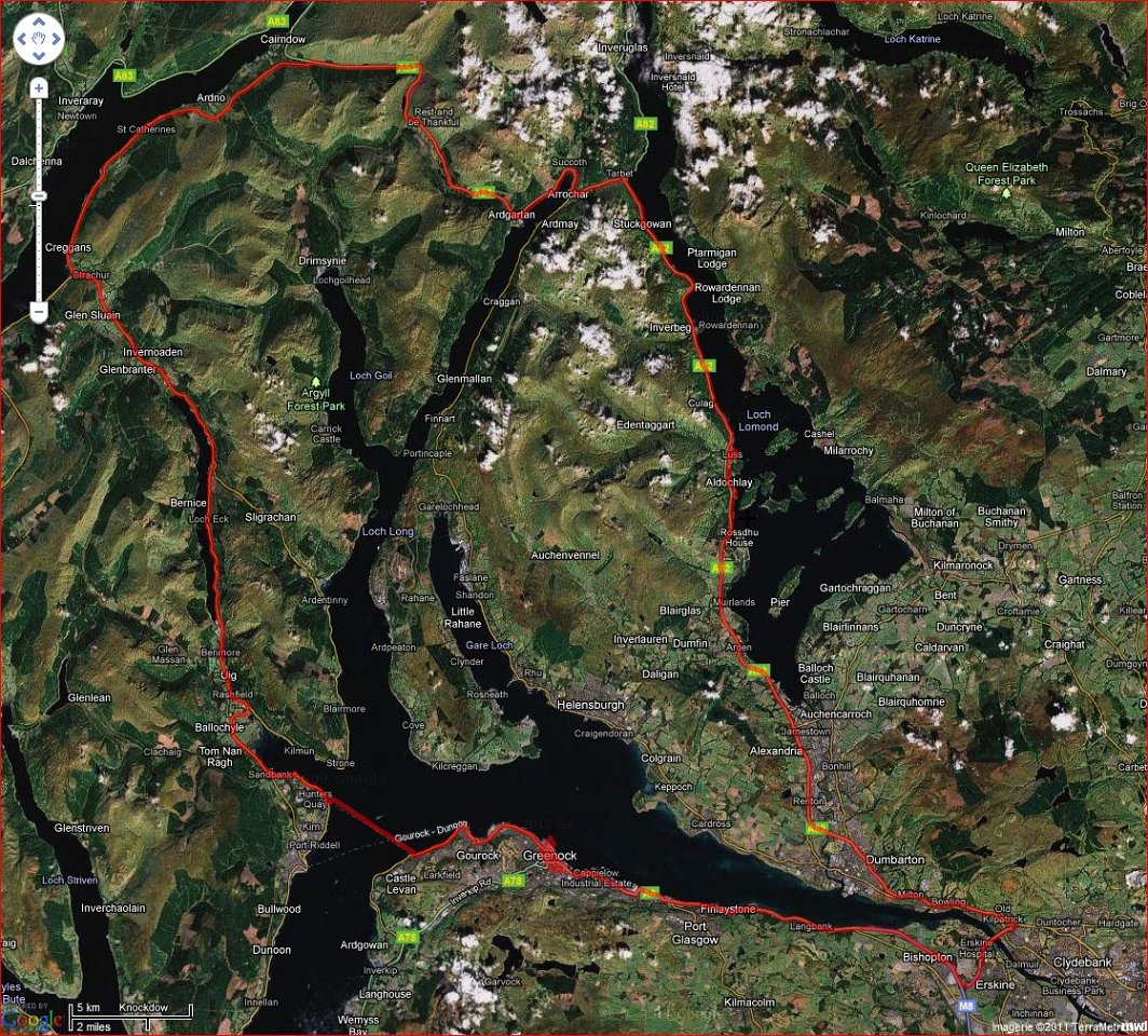 jeudi, 18 août 2011, 20h30 | Tracé de notre route de campagne | Before:(23 juillet 2011 - 13h15-17h30 - Glasgow Luss & Loch Lomond Drive 89$