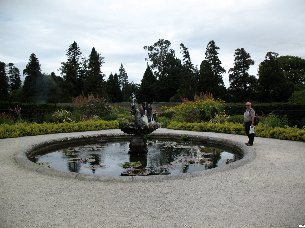 lundi, 25 juillet 2011, 14h35 | Powerscourt Estate and Gardens | Ville: Powerscourt Estate | Irlande | Powerscourt Estate and Gardens - Home to the Slazenger family, Powerscourt Estate boasts a superbly landscaped formal garden providing views of the green Wicklow Hills. Enter the estate along an avenue lined with 200-year-old beech trees and then have free time to explore the garden, tour the new exhibition rooms in the house, or watch a video on the history of the estate | GPS: 53°10'59.80" N | 6°11'14.63" W | © Cécile Brousseau | Fichier: IMG_5025.JPG