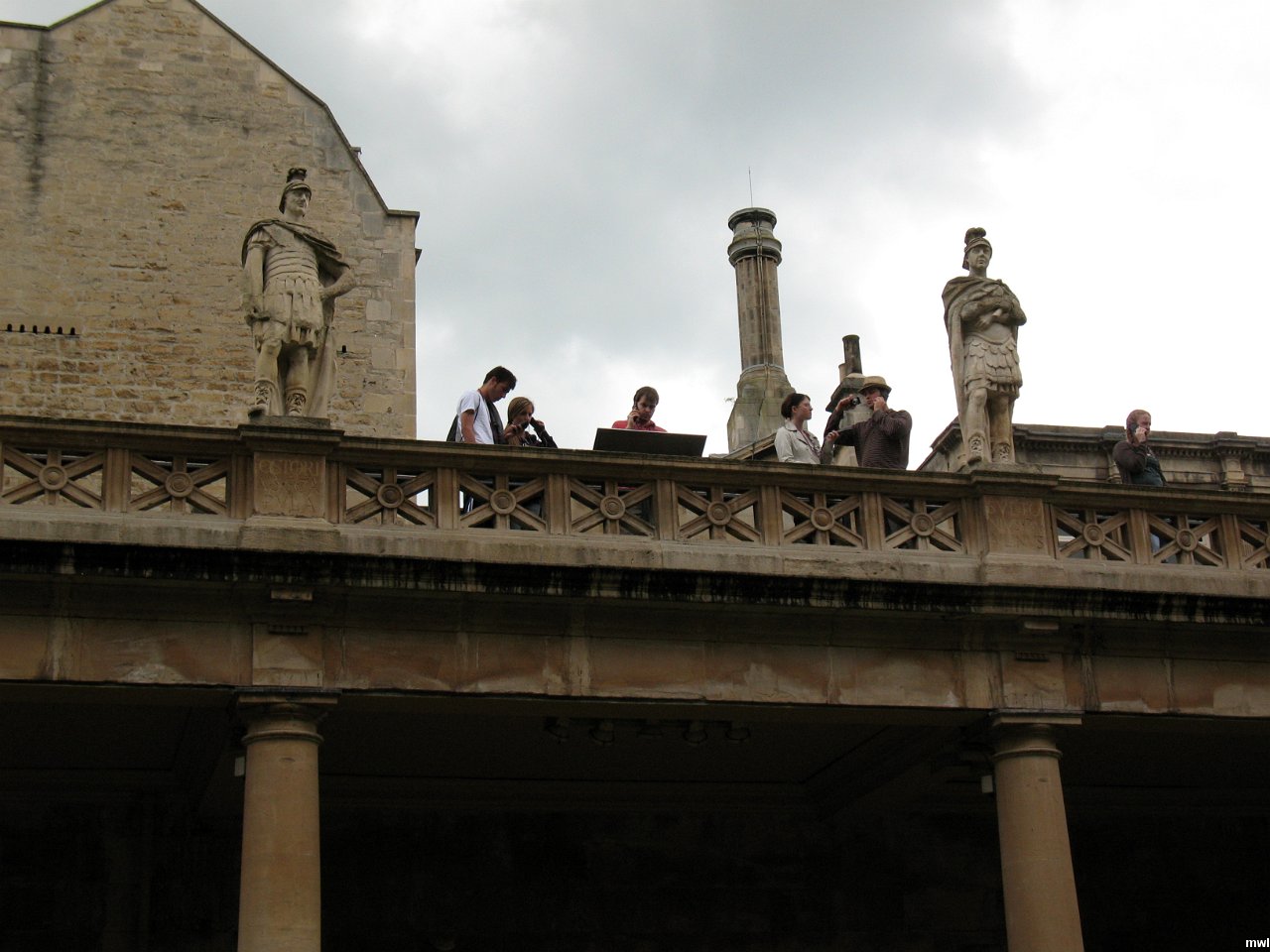 mercredi, 13 juillet 2011, 13h06 | Les bains romains de Bath | Ville: Stonehenge Bath Startford-upon-A | Angleterre | En 43 av. J.-C, les Romains fondèrent la ville pour en faire un lieu thermal et s'appelait en latin Aquae Sulis ("les eaux de Sulis"). Cependant, la tradition orale semble suggérer que Bath était connue avant cette date. Ils construisirent des bains et un temple dans les collines aux alentours de la ville, dans la vallée de l'Avon autour de sources chaudes. Edgar d'Angleterre fut proclamé roi à l'abbaye de Bath en 973. Bien plus tard, la ville devint populaire en tant que station thermale pendant l'époque georgienne, qui conduit à une importante expansion laissant un incroyable héritage architectural fabriqué avec la pierre de la région. Source: Wiki. | GPS: 51°22'51.17" N | 2°21'34.07" W | © Cécile Brousseau | Fichier: IMG_4699.JPG