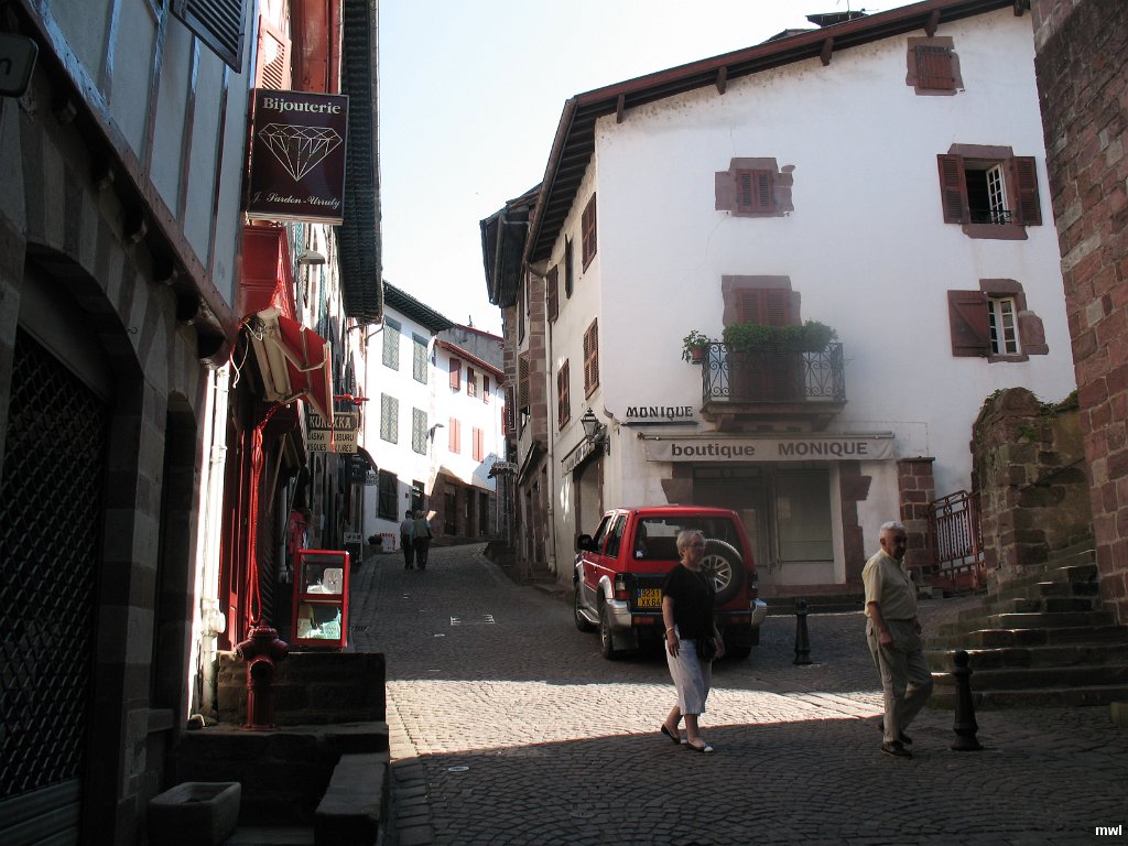 lundi, 1 juin 2009, 10 h 15 | Église de St-Jean-Pied-de-Port | Ville: St-Jean-Pied-de-Port | Pyrénées-Atlantiques | France | Village du moyen-âge. Lieu préviligié pour un départ de la marche vers St-Jacques de Compostelle. | GPS: 43°9'44.57" N | 1°14'14.02" W | ©Cécile Brousseau | Fichier: IMG_3402.JPG
