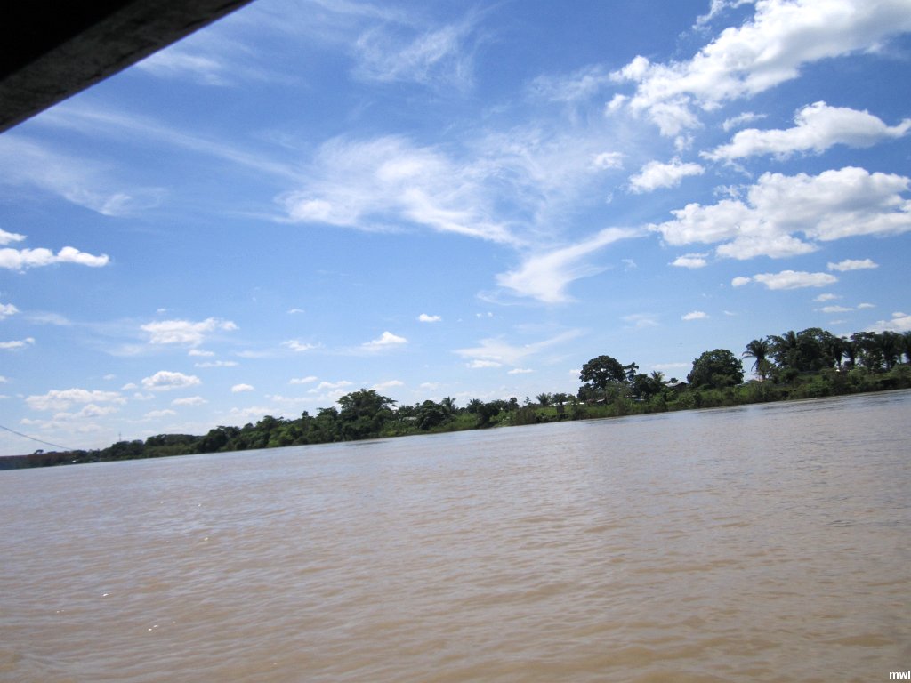 vendredi, 29 mars 2013, 13h18 | GPS: 12°35'43.61" S, 69°9'34.59" W | Notre pirogue en route vers le Eco-Amazonia Lodge | Ville: Rio Madre de Dios | Amazonie | Pérou | Voyage au Pérou du 27 mars au 20 avril 2013 | © Cécile Brousseau | Photo original: 3072 pixels | 2304 pixels | Fichier: IMG_0847.JPG
