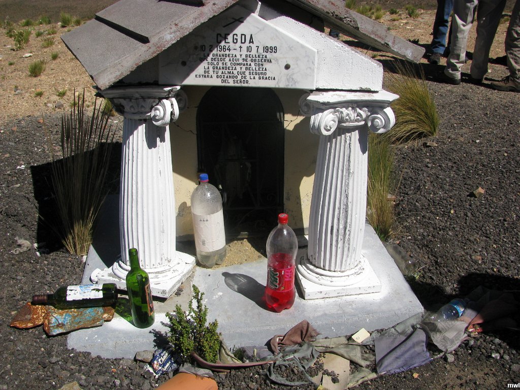 dimanche, 7 avril 2013, 09h53 | GPS: 16°1'7.35" S, 71°17'22.19" W | On voit ses monuments commémoratifs tout le long de la route | Reserva National Salinas Aguada Blancas | Pérou | Contrairement au paneau d'affichage le PichuPichu est à gauche et le Chachani à droite | © Marcel Walter Landry | Photo original: 3264 pixels | 2448 pixels | Fichier: IMG_4649.JPG