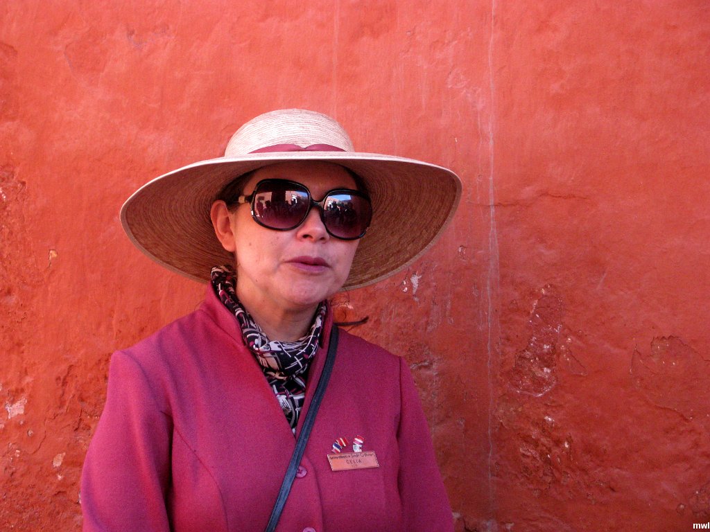 lundi, 8 avril 2013, 11h07 | GPS: 16°23'45.13" S, 71°32'13.72" W | Notre guide Celia | Ville: Arequipa | Pérou | Voyage au Pérou du 27 mars au 20 avril 2013 | © Marcel Walter Landry | Photo original: 3264 pixels | 2448 pixels | Fichier: IMG_4754.JPG