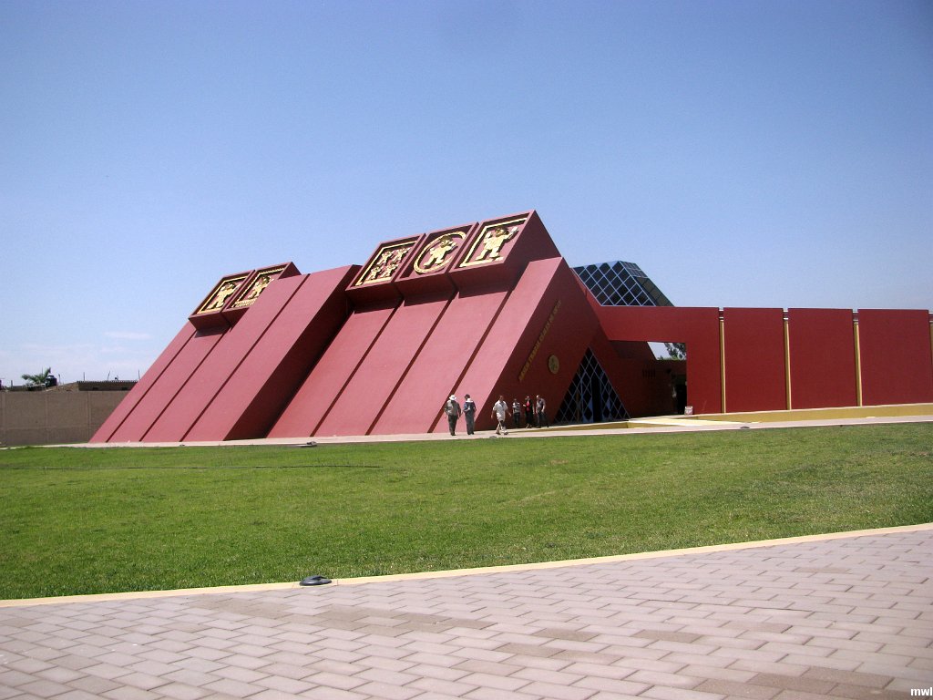 dimanche, 14 avril 2013, 12h50 | GPS: 6°42'19.81" S, 79°53'59.80" W | Pas de photo à l'intérieur | Ville: Chiclayo | Pérou | Musée Tumbas Reales qui regroupe l'ensemble des pièces originales découvertes sur le site de Sipan. Celui-ci est l'un des plus beaux musées au monde et offre une formidable présentation pédagogique de l'organisation sociale et des coutumes de la civilisation Moche qui aura une influence sur l'organisation de la civilisation inca | © Marcel Walter Landry | Photo original: 3264 pixels | 2448 pixels | Fichier: IMG_5552.JPG