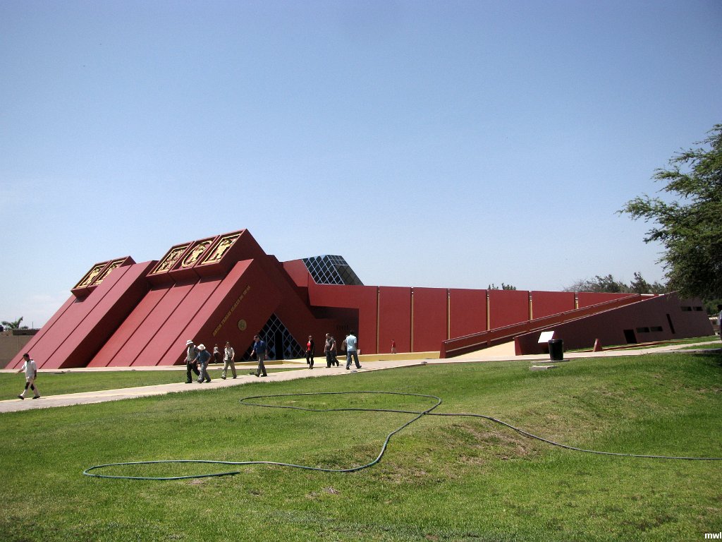 dimanche, 14 avril 2013, 12h50 | GPS: 6°42'19.82" S, 79°53'59.76" W | Pas de photo à l'intérieur | Ville: Chiclayo | Pérou | Musée Tumbas Reales qui regroupe l'ensemble des pièces originales découvertes sur le site de Sipan. Celui-ci est l'un des plus beaux musées au monde et offre une formidable présentation pédagogique de l'organisation sociale et des coutumes de la civilisation Moche qui aura une influence sur l'organisation de la civilisation inca | © Marcel Walter Landry | Photo original: 3264 pixels | 2448 pixels | Fichier: IMG_5553.JPG