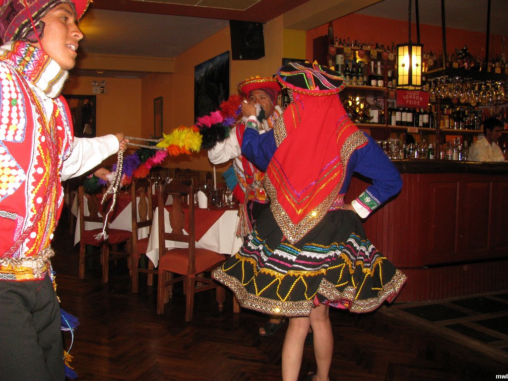 mercredi, 3 avril 2013, 20h09 | GPS: 13°30'58.46" S, 71°58'45.96" W | Ville: Cuzco | Pérou | Souper, orchestre et un medley de danses péruviennes. | © Marcel Walter Landry | Photo original: 3264 pixels | 2448 pixels | Fichier: IMG_4308.JPG