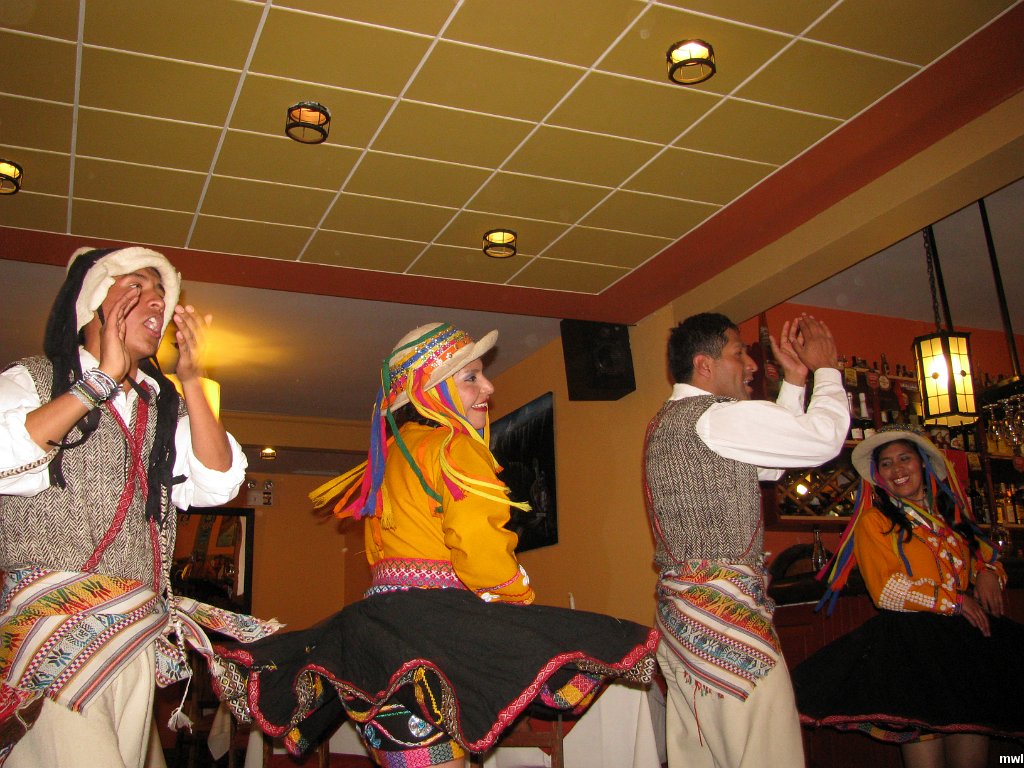 mercredi, 3 avril 2013, 20h32 | GPS: 13°30'58.78" S, 71°58'46.09" W | Ville: Cuzco | Pérou | Souper, orchestre et un medley de danses péruviennes. | © Marcel Walter Landry | Photo original: 3264 pixels | 2448 pixels | Fichier: IMG_4322.JPG