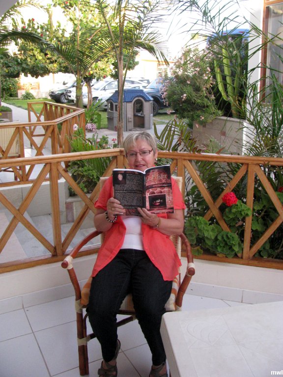jeudi, 11 avril 2013, 06h47 | GPS: 13°50'9.28" S, 76°15'7.50" W | Cécile lit le dernier livre de Gilles Gauthier - Le foyer | Ville: Pisco | Pérou | Voyage au Pérou du 27 mars au 20 avril 2013 | © Marcel Walter Landry | Photo original: 3264 pixels | 2448 pixels | Fichier: IMG_5190.JPG