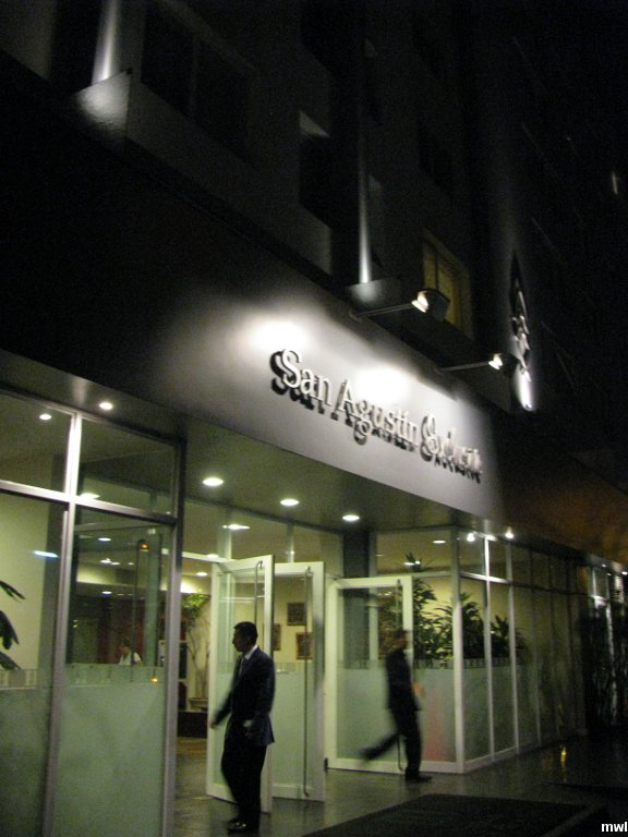 jeudi, 28 mars 2013, 00h51 | GPS: 12°7'33.83" S, 77°1'43.98" W | Notre hôtel - Hôtel San Agustin Exclusive | Ville: Lima | Pérou | Voyage au Pérou du 27 mars au 20 avril 2013 | © Marcel Walter Landry | Photo original: 3264 pixels | 2448 pixels | Fichier: IMG_3576.JPG