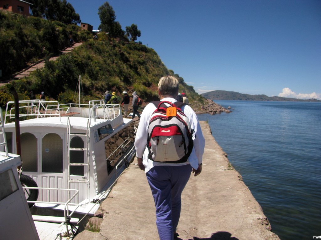 samedi, 6 avril 2013, 12h01 | GPS: 15°43'42.81" S, 69°46'14.21" W | On monte sur la colinne pour le dîner dans un petit auberge | Ville: Capachica | Lac Titicaca | Pérou | Voyage au Pérou du 27 mars au 20 avril 2013 | © Marcel Walter Landry | Photo original: 3264 pixels | 2448 pixels | Fichier: IMG_4531.JPG