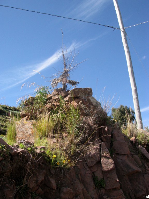 samedi, 6 avril 2013, 14h07 | GPS: 15°43'34.40" S, 69°46'40.37" W | On traverse la presqu'il dans un petit sentier | Ville: Capachica | Lac Titicaca | Pérou | Voyage au Pérou du 27 mars au 20 avril 2013 | © Marcel Walter Landry | Photo original: 3264 pixels | 2448 pixels | Fichier: IMG_4553.JPG