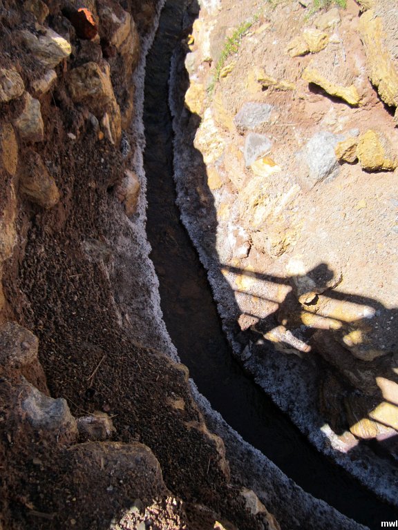 lundi, 1 avril 2013, 09h03 | GPS: 13°18'10.22" S, 72°9'18.08" W | La source d'eau chaude salée | Ville: Maras | Vallée Sacrée | Pérou | Visite des salines de Maras perchées à flanc de montagne | © Cécile Brousseau | Photo original: 3072 pixels | 2304 pixels | Fichier: IMG_0918.JPG